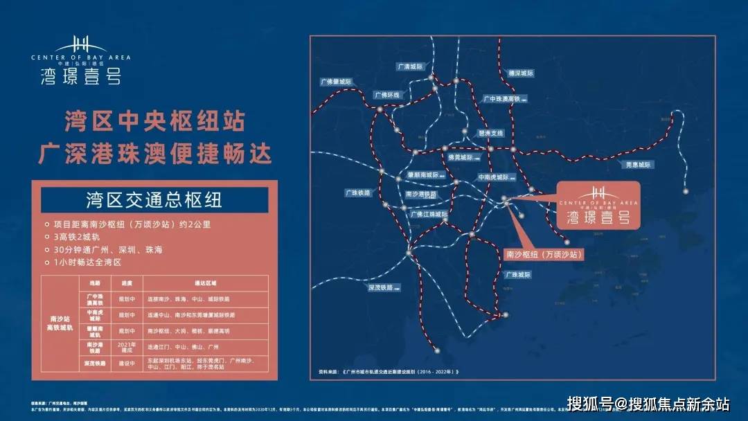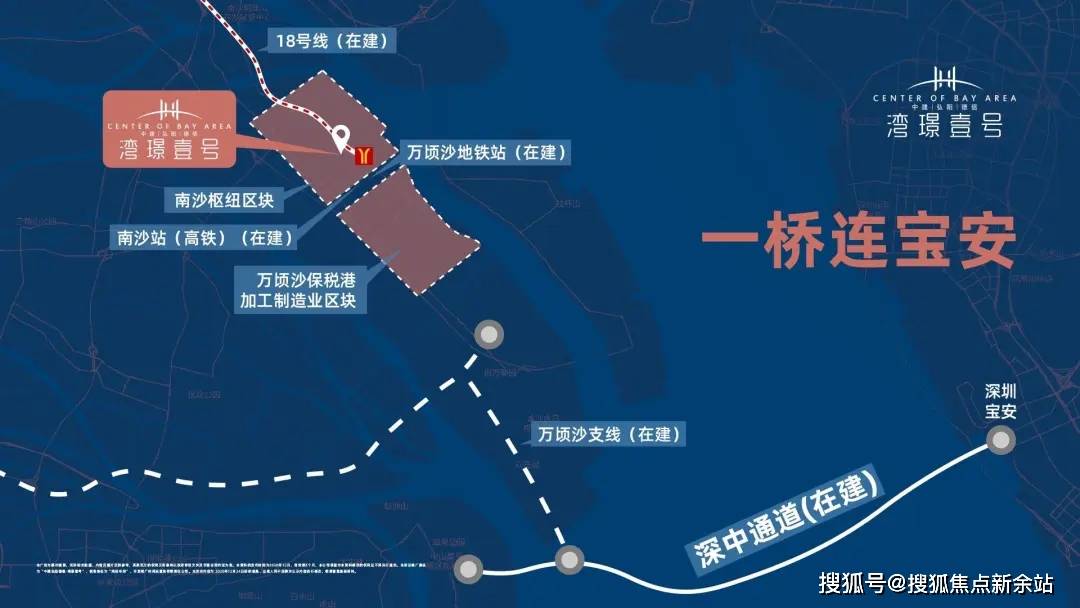 项目地处南沙枢纽区块,占位粤港深度合作区、万顷沙综合生活服务区核芯,紧靠片区内商业中心(规划),紧邻广州地铁18号线万顷沙站、深中通道、明珠湾大桥,揽两横四纵干道、六高速八轨道立体交通,中建弘阳德信·湾璟壹号售楼处电线,深圳宝安中心,畅享湾区内环快捷通勤,一揽南沙、番禺、天河商业配套,同时更享明珠湾发展红利。