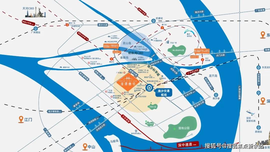 • 凤凰大道:南沙城市开发的黄金主轴,从蕉门区府到灵山岛、到横沥岛,下一个开发热点就在珠江街南沙枢纽区块,与其追高入市横沥岛,